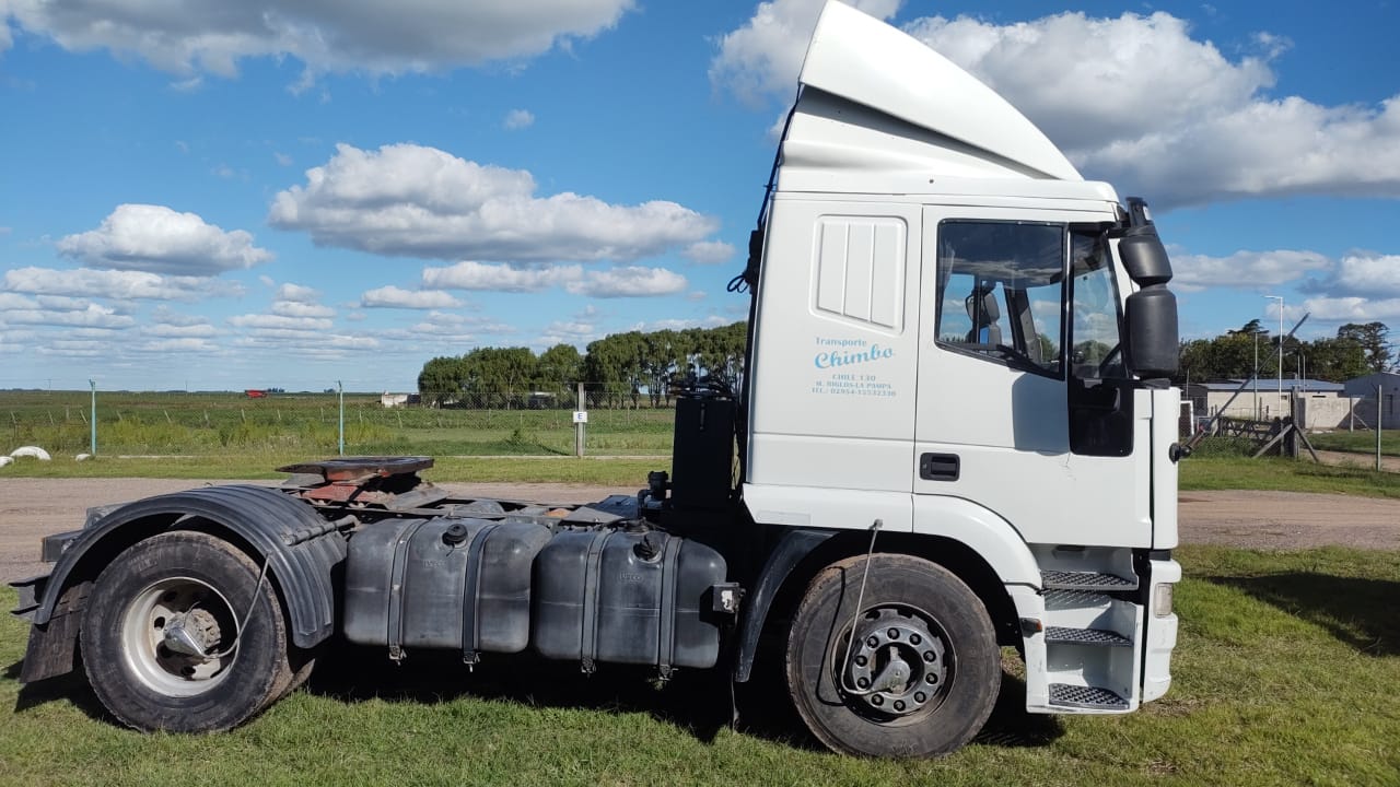 Marca Iveco Modelo Eurotech 450e37 Tractor 4x2 370Hp 1.200.000 kms Equipo Hidraulico Año 2006 Vigia de Cubiertas Cubiertas 6 Nuevas con menos de 2.000 kms Listo para transferir Service al día Realizados cada 18.000 o 22.000 Kms ¡Entrega inmediata!
